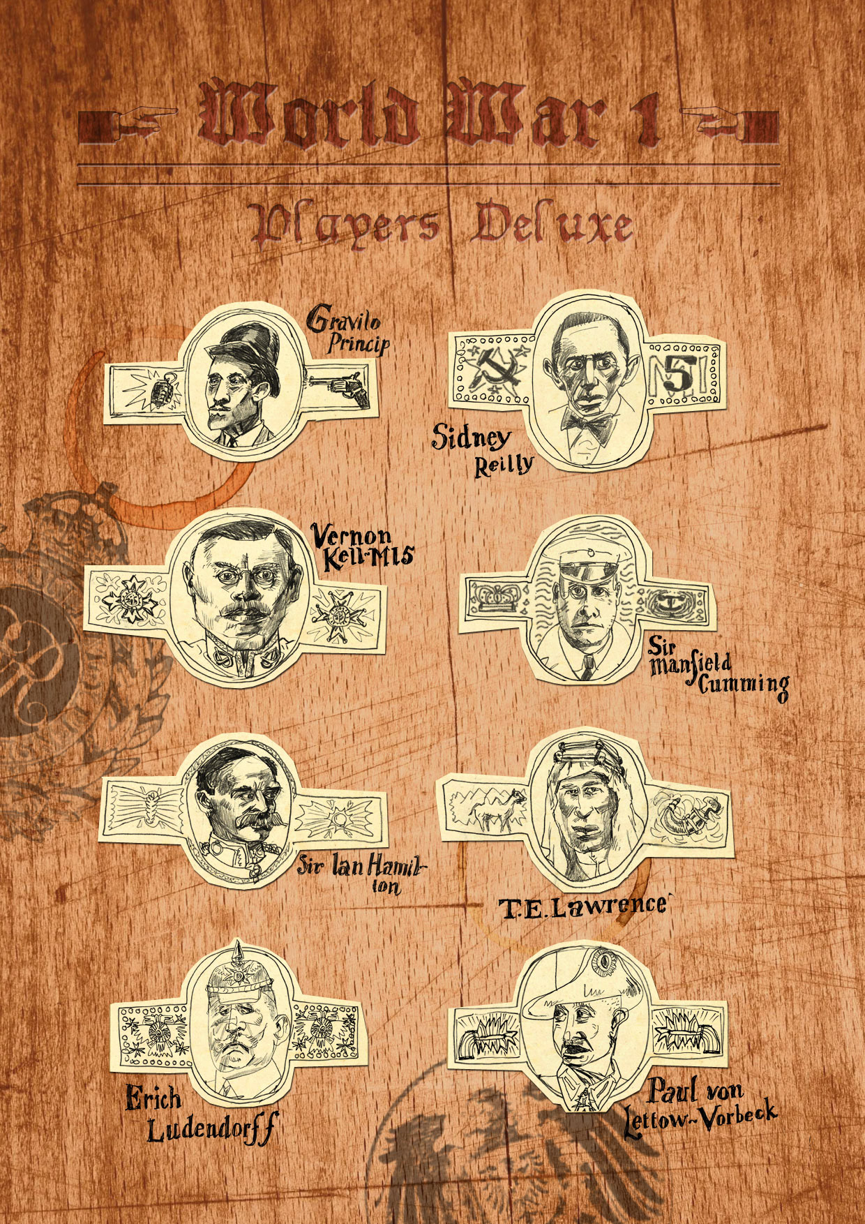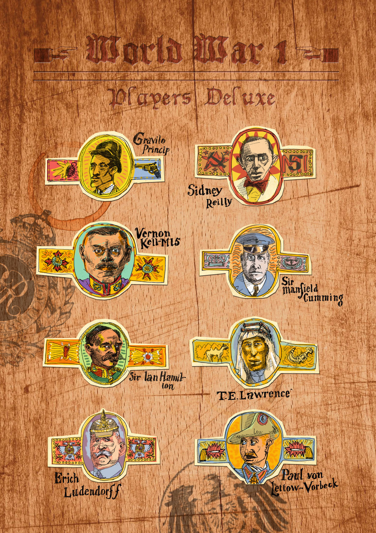 Another look at ww1. Trying to avoid the standard approuch by using cigarbands to tell something about the main players of World War 1. Both in black/white and colour.